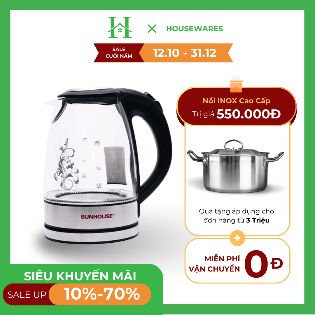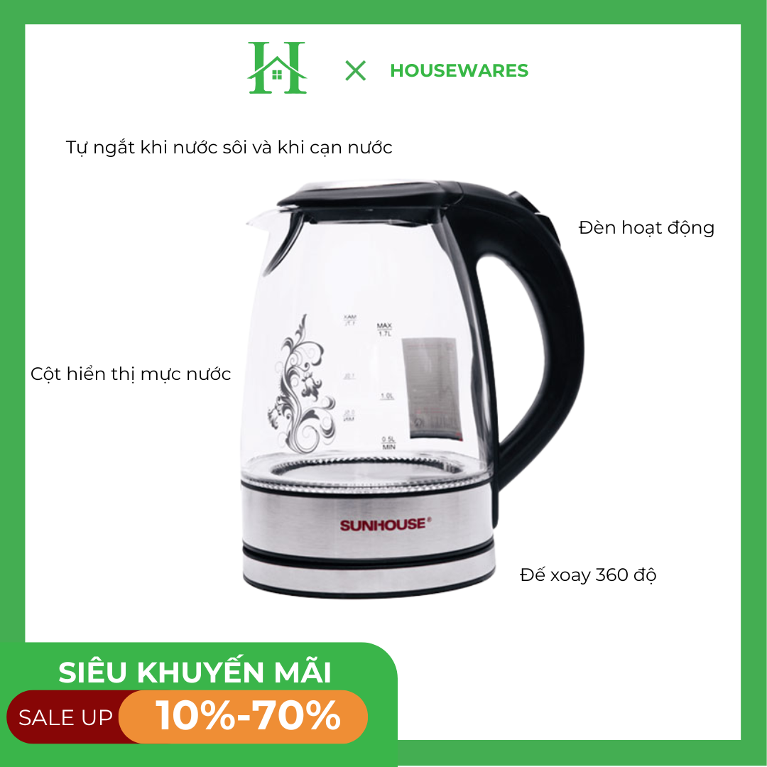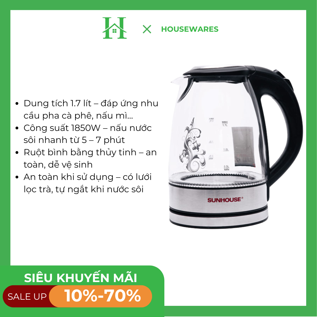 Giới thiệu: Ấm siêu tốc thủy tinh 1.7L Sunhouse SHD1217 1850W