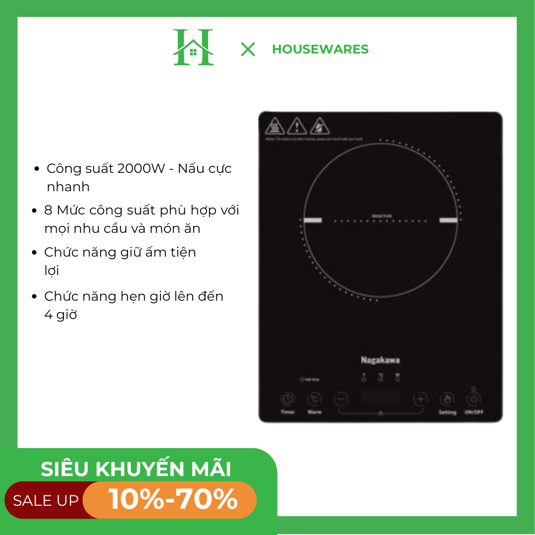 Bếp từ đơn Nagakawa NAG0715 phát ra từ trường làm nóng trực tiếp đáy nồi, không mất thời gian truyền nhiệt qua mặt bếp, nhờ thế gia nhiệt siêu nhanh, hiệu suất cao, tiết kiệm điện năng. Công suất tối đa lên đến 2000W, các món ăn được nấu sôi nhanh chóng, tiết kiệm thời gian nấu nướng.