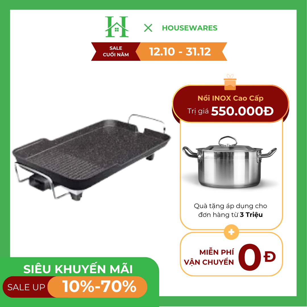 - Tay cầm và khung bếp làm từ inox bền chắc, dây điện 100% lõi đồng tải điện khỏe.