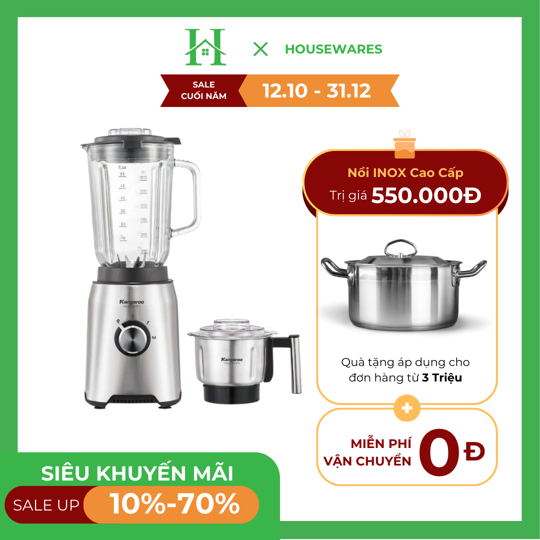 Máy xay sinh tố Kangaroo KGBL8002 1.5 lít có 2 cối xay riêng biệt. Công suất mạnh mẽ và lưỡi dao 6 cánh là điểm nâng cấp đáng kể của sản phẩm so với nhiều lựa chọn khác trên thị trường, đáp ứng mọi nhu cầu xay thực phẩm, xay hạt khô,…